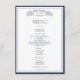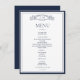 Elegant Navy Blue Crest Botanical Monogram Wedding Menu