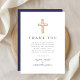 Elegant Navy Blue Cross Boy Baptism Thank You Card