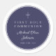 Elegant Navy Blue Cross Boy First Communion Round Sticker.