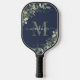 Elegant Navy Blue Eucalyptus Botanical Monogram Pickleball Paddle