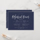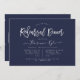 Elegant and modern faux silver handwritten script Rehearsal Dinner Invitations and Navy Blue, a DIY background colour.