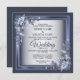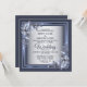 Elegant Navy Blue Floral Framed Silver Wedding Invitation