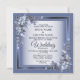 Elegant Navy Blue Floral Framed Silver Wedding Invitation