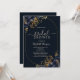 Elegant navy blue flowers with gold leaves on navy blue background. Beautifully invitation that can be customised with your name. Select the "customise" button to change the font style, colour and size.
