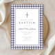 Elegant Navy Blue Gingham Boy Baptism Invitation