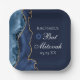 Elegant Navy Blue Gold Agate Bat Mitzvah Party Paper Plate
