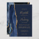 Elegant Navy Blue Gold Agate Wedding Invitation