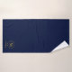 Elegant Navy Blue Gold Botanical Wreath Monogram Bath Towel Set