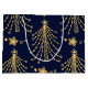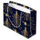 Elegant Navy Blue Gold Christmas Tree Star Pattern Large Gift Bag