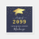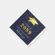 Elegant personalised navy blue and gold graduation party paper napkins featuring a faux metallic gold foil graduation cap, gold confetti, handwritten script typography and class year with CONGRATULATIONS and your graduate's name against an editable navy blue background colour you can change to a school colour or coordinating party theme colour in EDIT. ASSISTANCE: For help with design modification/personalisation, colour change, transferring the design to another product or would like coordinating items, contact the designer BEFORE ORDERING via Zazzle Chat or makeitaboutyoustore@gmail.com.