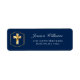 Send out invitations or thank your family and loved ones for attending your son's First Holy Communion or giving a gift with this elegant gold cross and navy blue First Holy Communion Return Address Label. This return address label for holy communion features a beautiful golden cross with a golden frame against a rich navy blue background.