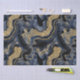 Elegant vivid navy blue foil and gold glitter liquid agate design