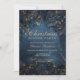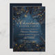 Elegant Navy Blue Gold Lights Pine Party Christmas Invitation