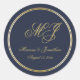 Elegant Navy Blue Gold Monogram Script Wedding Classic Round Sticker