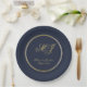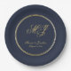 Elegant Navy Blue Gold Monogram Script Wedding Paper Plate