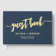 Elegant Navy Blue Gold Photo Minimalist Script Guest Book