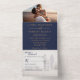 Elegant Navy Blue & Gold Photo Wedding All In One Invitation