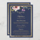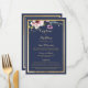 Elegant navy blue, gold, and pink floral Wedding Menu invitation. This botanic pink floral Wedding luxury party invitation is perfect for any classy and sophisticated glam girl. This design is ideal for a trendy and stylish party event. Customize this design with your own message and personalized information. All designs are printed.