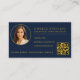Elegant Navy Blue Gold Real Estate Agent QR Code Business Card