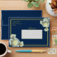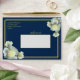 Elegant Navy Blue Gold Script Frame White Rose Envelope