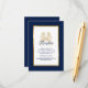 Provide your guests with all of your wedding reception details with this elegant enclosure card featuring modern script, navy blue text including artistic kissing seahorses and metallic gold frame on the front of the card. A navy blue background is on the front and back.