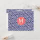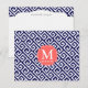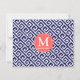 Modern navy dark blue and white geometric greek key pattern. Elegant design, features your custom monogram on a girly coral fancy frame.