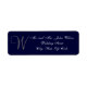 Monogram Wedding Invitation Return Address Labels. Return Address Label Design by Elke Clarke ©2010. Customise with your monogram initial, name and address details. Choose the background colour and monogram colour too. Shown with navy blue and grey initial in an elegant script font. Perfect as address labels for the front of your RSVP envelopes or return address labels for your wedding invitations.