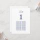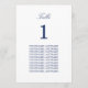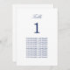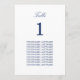 Elegant Navy Blue Guest Names Table Card, easy to personalise in the online personalisation template in order to show the table number for the appropriate table and the guest names for that table. The design copies across to the other side of the card automatically so as to help guests to find their table from either side of the table. This table card design features stylish navy blue text in a simple plain minimalist layout, whilst also incorporating space around the text elements to allow for choice of display methods such as hanging or framing the card.