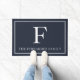 Elegant Navy Blue Initial Family Name Doormat