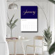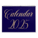 Elegant Navy Blue Minimalist| Gold Script Letters Calendar
