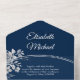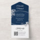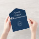 Elegant Navy Blue QR Code Monogram Wedding RSVP All In One Invitation