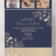 This elegant all-in-one navy blue wedding invitation features delicate gold floral illustrations, a romantic photo collage, and a modern QR code for easy RSVPs. Perfect for couples who want a sophisticated, tech-savvy, and beautiful way to announce their special day. Customise your names, date, and website with ease for a seamless guest experience.