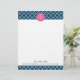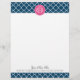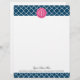 Elegant Navy Blue Quatrefoil with Pink Monogram Personalized Letterhead