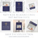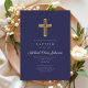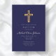 Elegant Navy Blue Religious Cross Boy Baptism Invitation