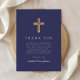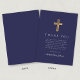 Elegant Navy Blue Religious Cross First Communion Thank You Card
