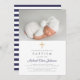 Personalised Elegant Navy Blue Religious Cross Photo Baptism Invitation.