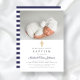 Elegant Navy Blue Religious Cross Photo Baptism Invitation