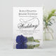 This beautiful wedding invitation features a gorgeous photograph of a single long stemmed navy blue coloured rose lying on its side reflecting in a pool of water with waves and ripples. The design features a fancy calligraphy script with a long curly tail making it both modern and classic. Elegant, sophisticated and chic way to invite your friends and family to share in your special day. The back of the card has a QR code for your wedding website and a brief note instructing people to visit the site for details and RSVP.