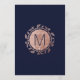 Elegant, modern, and chic faux rose gold and trendy navy blue floral hand drawn pattern, wedding reception menu cards. This classic and sophisticated design is perfect for the classy, stylish, and trendy wedding reception. Personalise with your own menu on the front, along with your names and dates. Then customise the back with your monogram initial. All photo print design.