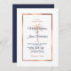 Invite your guests to help you celebrate your special day with this elegant invitation featuring modern script, rose gold copper and navy blue text including an artistic palm tree and metallic rose gold copper frame on the front. A coordinating navy blue background is on the back of the card. If you need help or a custom order, please contact me.