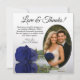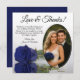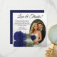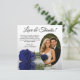 These beautiful wedding thank you cards are a wonderful way to show your appreciation to your friends and family for celebrating with you on your special day. They feature your wedding photo in an oval shaped frame with a single long stemmed navy blue, royal blue, or cobalt coloured rose lying on its side reflecting in water. The title reads "Love & Thanks" with room for a custom note and signature. Classy, romantic, and sophisticated, these cards are the perfect way to conclude your wedding celebration.