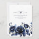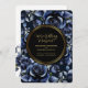 Elegant Navy Blue Roses Floral & Gold Black Frame Invitation