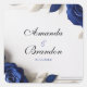 Elegant Navy Blue Roses & Silver Glitter Wedding Square Sticker