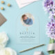 Elegant Navy Blue Script Boy Photo Baptism Acrylic Invitations.
