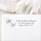 Elegant navy blue and white script custom initials monogram chic wedding return address labels.