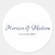 Elegant navy blue script custom Wedding favours Classic Round Sticker