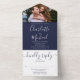 Elegant Navy Blue Script Monogram Photo Wedding All In One Invitation