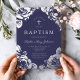 Personalised Elegant Navy Blue Silver Floral Boy Baptism Foil Invitation.