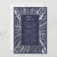 Elegant Navy Blue Silver Floral Leaf Wedding Invitation