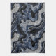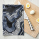 Elegant Navy Blue & Silver Glitter Agate Pattern Tea Towel